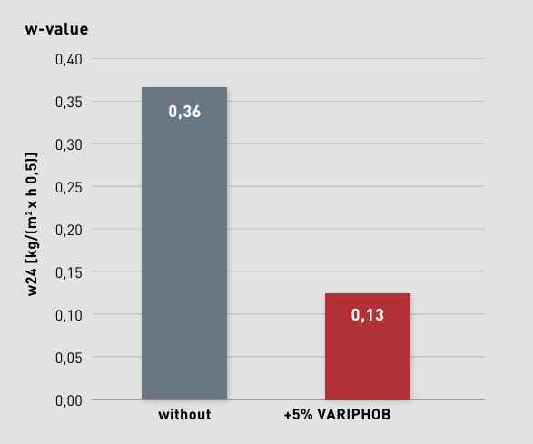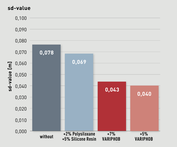 VARIPHOB?防水系列通過減少涂層的毛細管吸水性,有效抑制水分通過毛細作用滲入內(nèi)部??茖W測試顯示,其W值(吸水性指標)顯著低于常規(guī)產(chǎn)品,可延長涂層的防水壽命。